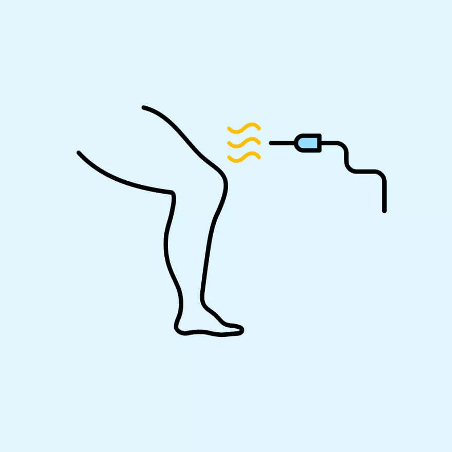 La RFA funciona con ondas de radio que emiten calor y sellan las venas con problemas. Se inserta un catéter guiado por ultrasonido en las venas no saludables y, con la orientación experta de su médico de venas, se pulsa suavemente para calentar y cerrar las vías de las venas en mal estado.