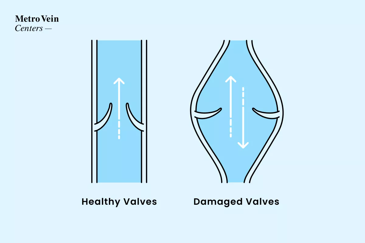 Swelling in the legs or veins is a direct result of poor circulation damaging the valves inside your veins. When the valves malfunction, blood is able to flow through veins in both directions (rather than the one-way route it is designed to follow) causing pooling blood, excess pressure, and visible swelling.